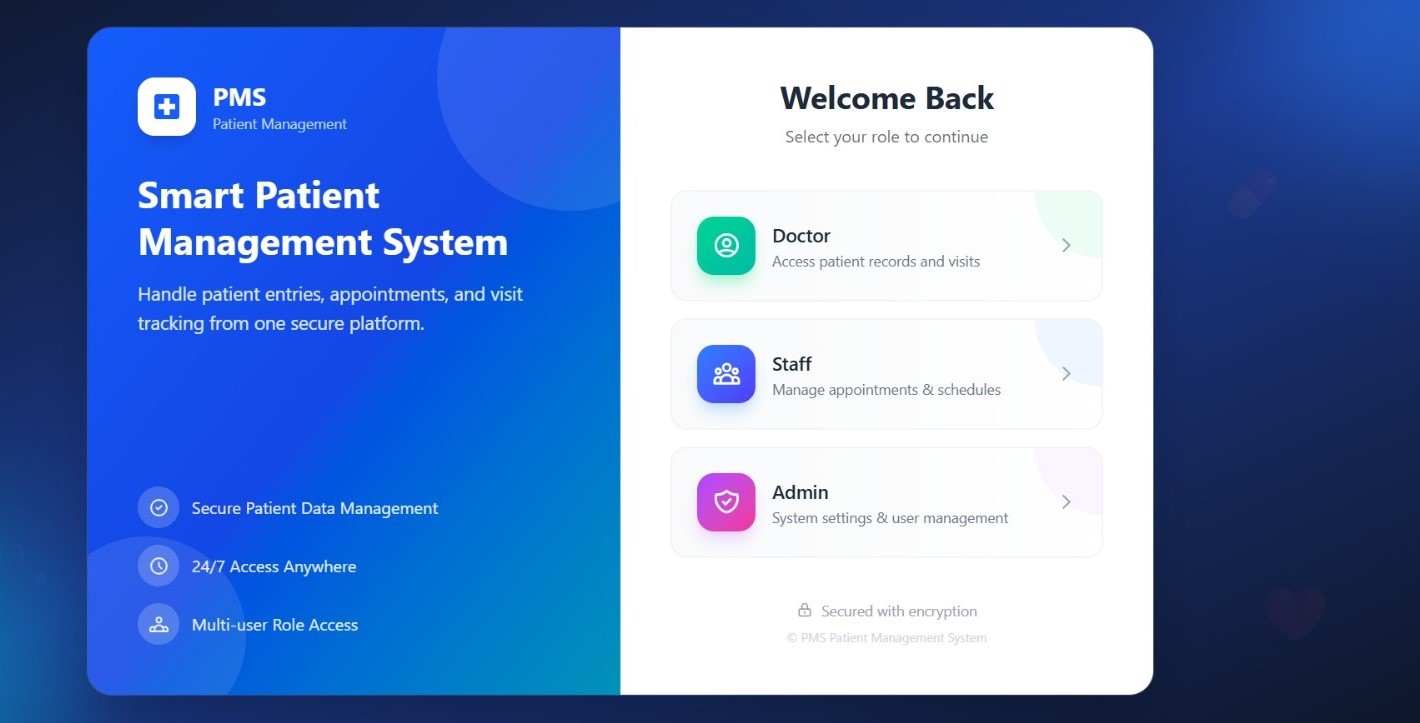 A web-based Patient Management System designed for local hospitals and clinics to efficiently manage patient appointments, daily records, and doctor workflows.
