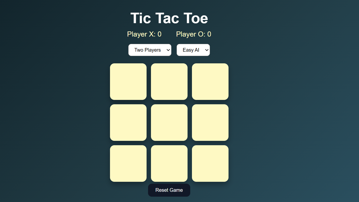 A feature-rich Tic Tac Toe web game built using HTML, CSS, and JavaScript. It supports both two-player mode and single-player mode against a smart AI with adjustable difficulty levels.