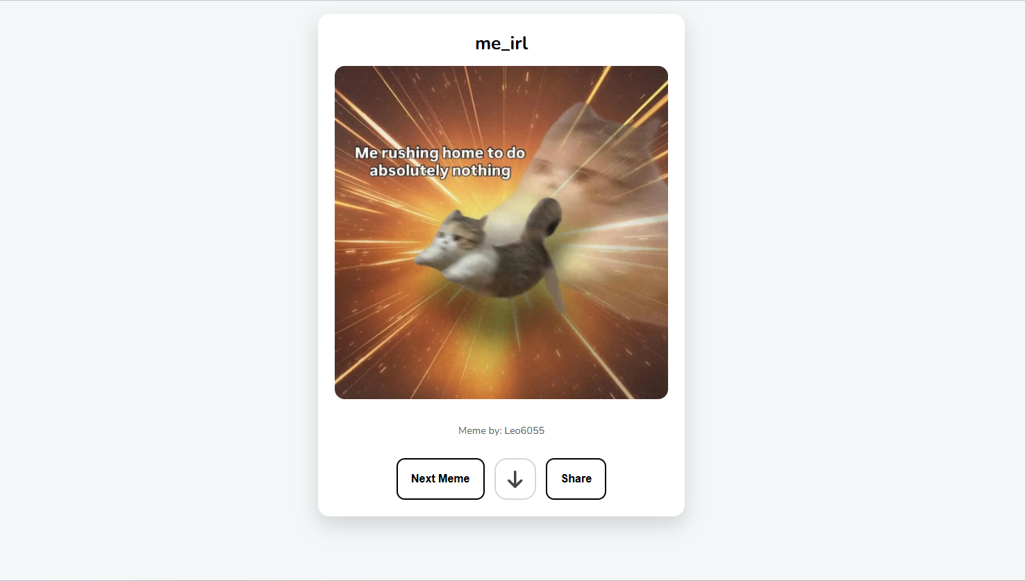 A web-based meme generator that pulls new memes in real time using a Google-powered API. Features include a “Next Meme” button, download option, and social sharing, ensuring users always get fresh and entertaining content.